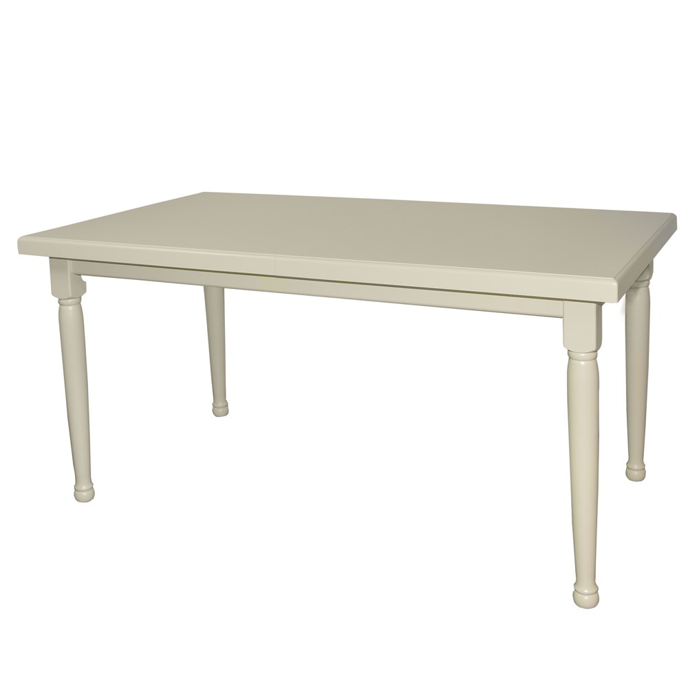 Tavolinë ngrënie me zgjerim, syprinë MDF(5cm), këmbë druri, kremi, 150-190x85xH77 cm