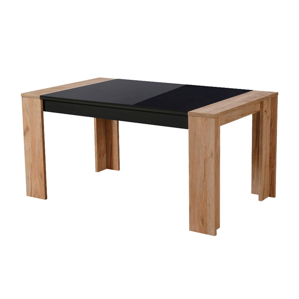 Po vlerësoni:Tavolinë ngrënie, TOLEDO, melaminë dhe xham 6mm, lisi floriri/ xham i zi, 154x90.5xH75 cm