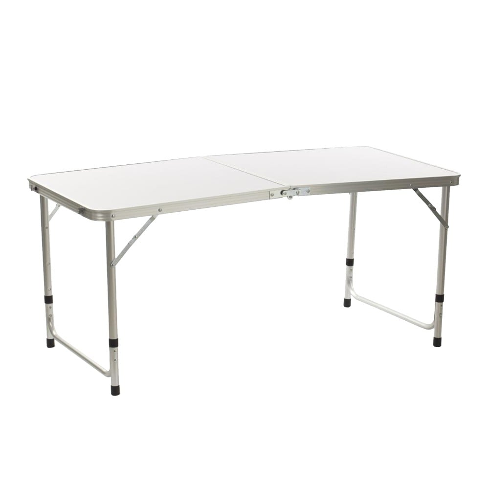 Tavolinë e palosshme, prej materiali alumini, ne permase 60x60 cm. Materiali alumin i lehtë i saj e bën atë të thjeshte për tu marrë me vete. E përshtatshme për tu përdorur në kuzhinë, në oborr ose gjatë piknikut apo kampingut, e përshtatshme si një tryezë anësore në një tarracë.