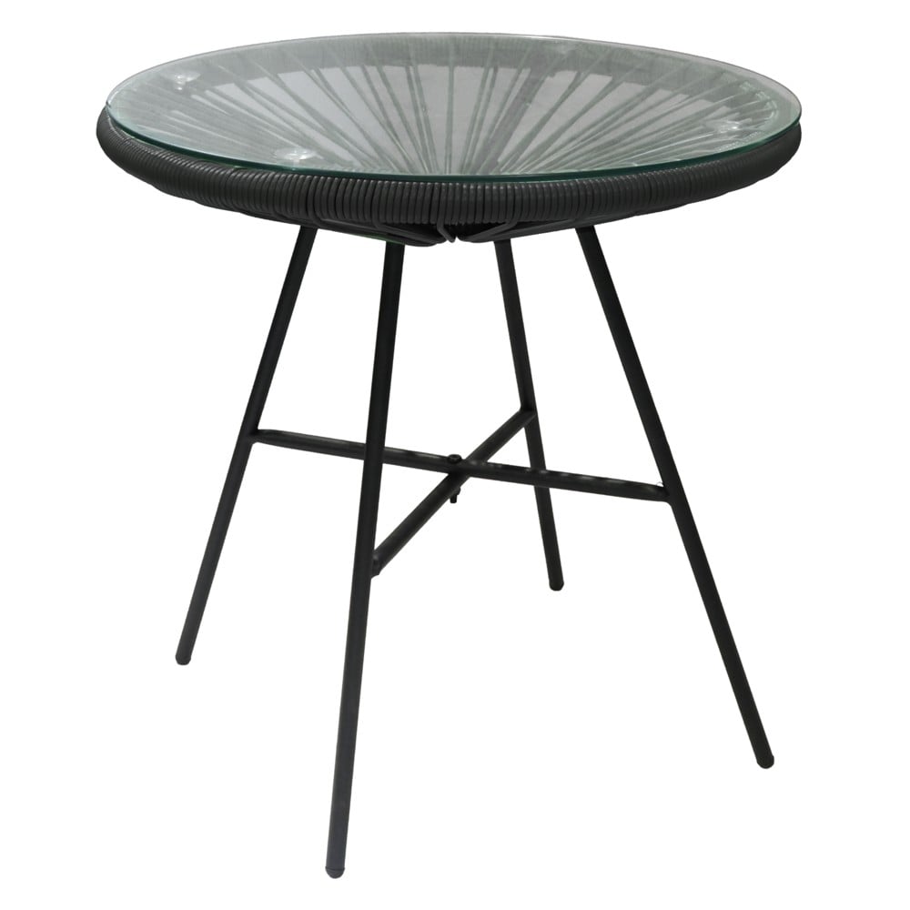Nje kombinim perfekt midis funksionalitetit dhe dizajnit elegant. Struktura metalike, siguron nje bazament te qendrueshem. Lyerja me ane te metodes elektrostatike, eliminon ndryshkjen dhe degradimin. Siperfaqja e mbuluar nga rattani sintetik emeton bukurine natyrale te rattanit, ne te njejten kohe rrit qendrueshmerine fale fibrave sintetike. Sendet mbeshteten mbi siperfaqen e xhamit, e cila eshte temperuar per qendrueshmeri te larte dhe rezistence ndaj gervishtjeve. Nje tavoline moderne, elegante dhe minimaliste, e cila shkon me se miri me orendite e rattanit sintetik.