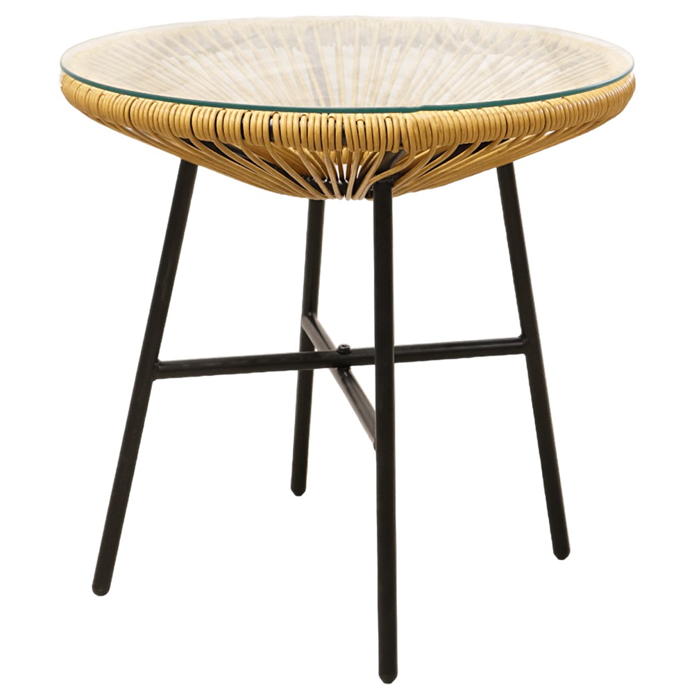 Nje kombinim perfekt midis funksionalitetit dhe dizajnit elegant. Struktura metalike, siguron nje bazament te qendrueshem. Lyerja me ane te metodes elektrostatike, eliminon ndryshkjen dhe degradimin. Siperfaqja e mbuluar nga rattani sintetik emeton bukurine natyrale te rattanit, ne te njejten kohe rrit qendrueshmerine fale fibrave sintetike. Sendet mbeshteten mbi siperfaqen e xhamit, e cila eshte temperuar per qendrueshmeri te larte dhe rezistence ndaj gervishtjeve. Nje tavoline moderne, elegante dhe minimaliste, e cila shkon me se miri me orendite e rattanit sintetik.