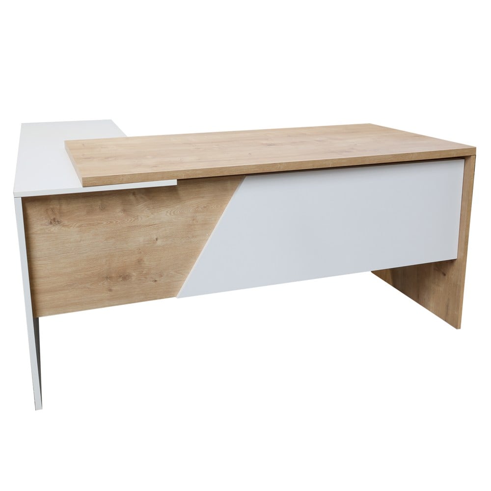 Tavolinë zyre, Edussa, melaminë, e bardhë/lisi, 160x150x75 cm