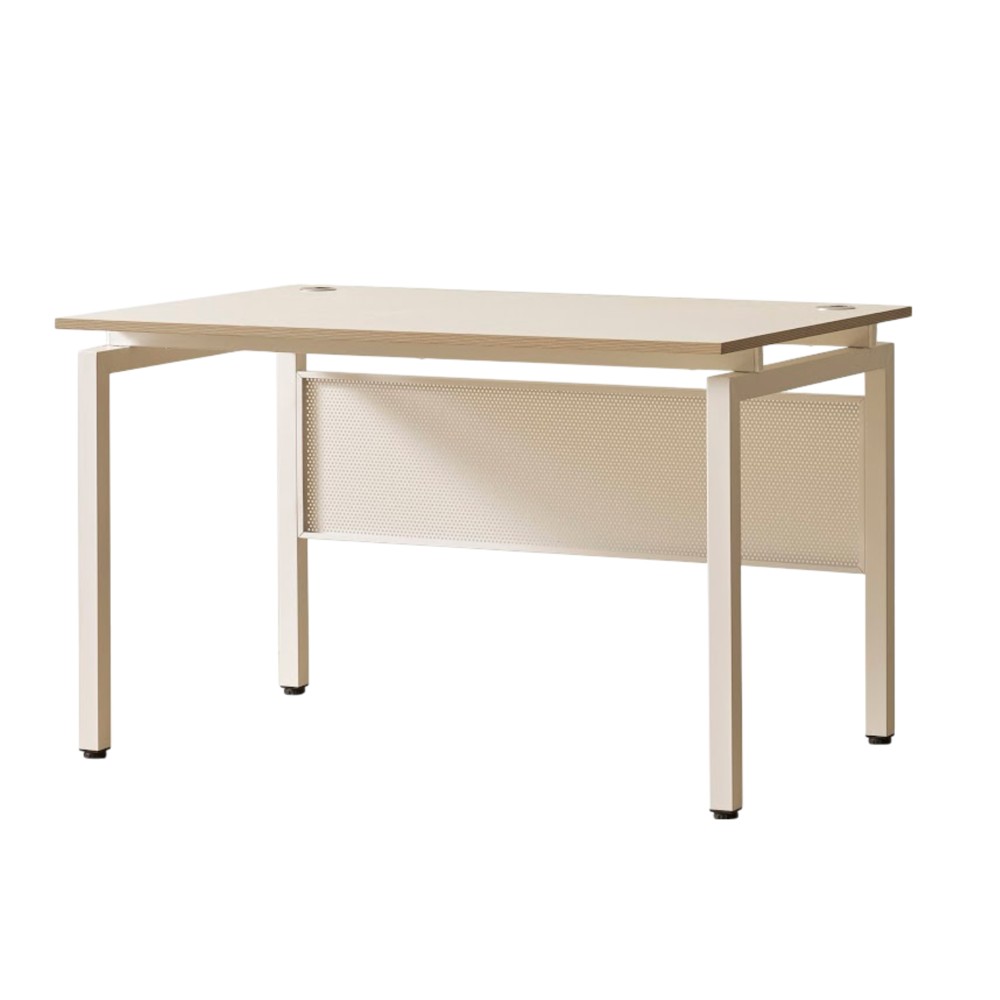 Kjo tavolinë zyre me sipërfaqe prej melamine në ngjyrë të bardhë është një zgjedhje ideale për çdo hapësirë pune që kërkon funksionalitet dhe dizajn modern. Me përmasa 140x80xH74 cm, ajo ofron një sipërfaqe të gjerë pune, e cila mundëson vendosjen e kompjuterit, dokumenteve dhe aksesorëve të ndryshëm në mënyrë të organizuar dhe efikase. Sipërfaqja prej melamine është rezistente ndaj gërvishtjeve, njollave dhe lagështisë, duke e bërë këtë tavolinë të përshtatshme për përdorim të përditshëm në zyrë apo në ambientet shtëpiake. Ngjyra e bardhë sjell ndjesinë e pastërtisë, duke krijuar një atmosferë të qetë dhe të këndshme për punë. Dizajni i thjeshtë dhe elegant i kësaj tavoline e bën atë të përshtatshme për çdo stil arredimi, nga ai minimal deri te ai bashkëkohor, duke i dhënë ambientit tuaj një pamje profesionale dhe të organizuar.