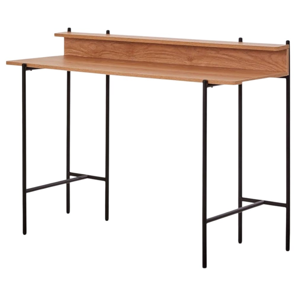 Kjo tavolinë zyre ofron një kombinim të shkëlqyer midis funksionalitetit dhe dizajnit modern-industrial, duke përmbushur nevojat e çdo ambienti pune apo zyre personale. Me përmasa 120x45.5xH85.5 cm, ajo siguron hapësirë të bollshme për kompjuter, dokumente, dhe pajisje të tjera pune, duke i dhënë përdoruesit komoditet maksimal gjatë punës. Struktura metalike e fortë në ngjyrë të zezë garanton stabilitet dhe qëndrueshmëri afatgjatë, ndërsa sipërfaqja prej melamine në ngjyrë kafe i shton një pamje elegante dhe të ngrohtë tavolinës. Materialet janë rezistente ndaj gërvishtjeve dhe lagështisë, duke e bërë tavolinën të përshtatshme për përdorim intensiv dhe të përditshëm. Dizajni minimalist dhe ngjyrat neutrale e bëjnë këtë tavolinë të përshtatshme për çdo stil arredimi, nga ai klasik deri te ai bashkëkohor, duke sjellë një atmosferë profesionale dhe të organizuar në hapësirën tuaj të punës.
