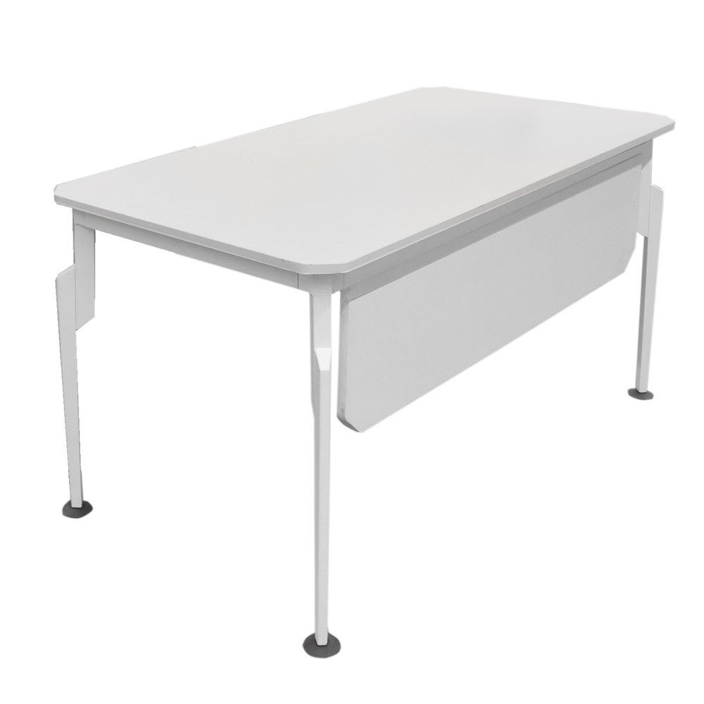 Tavolinë zyre, strukturë alumini (e bardhë), syprinë melamine, e bardhë, 140x75xH75 cm
