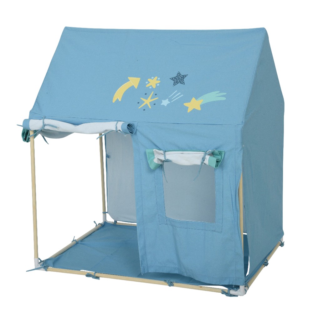 Tenda për fëmijë, e bërë nga material poliestër i qëndrueshëm, ofron një ambient të sigurt dhe argëtues për fëmijët. Me dimensione L110-W80-H120 cm, tenda është e përshtatshme për të krijuar një hapësirë të vogël për lojërat e fëmijëve. E dizajnuar me ngjyrë blu, kjo tendë është e lehtë për tu montuar dhe është ideale për përdorim brenda shtëpisë.