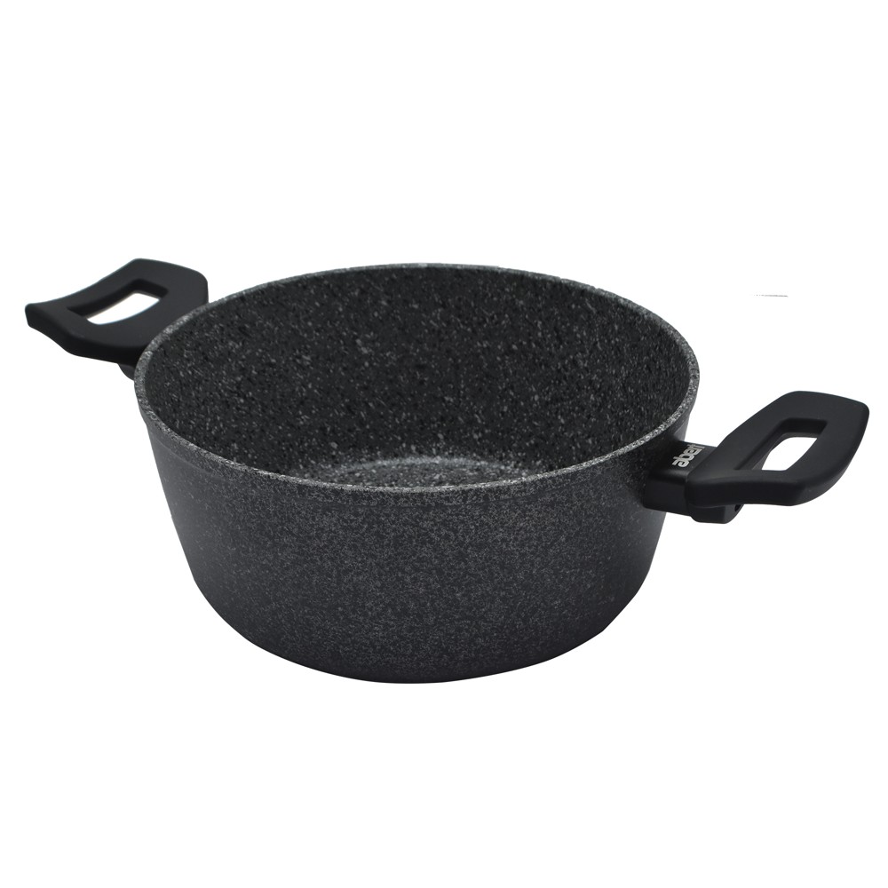 Deep pot with two handles and induction, stone / aluminum coating, gray, Dia.20x9.5 cm
