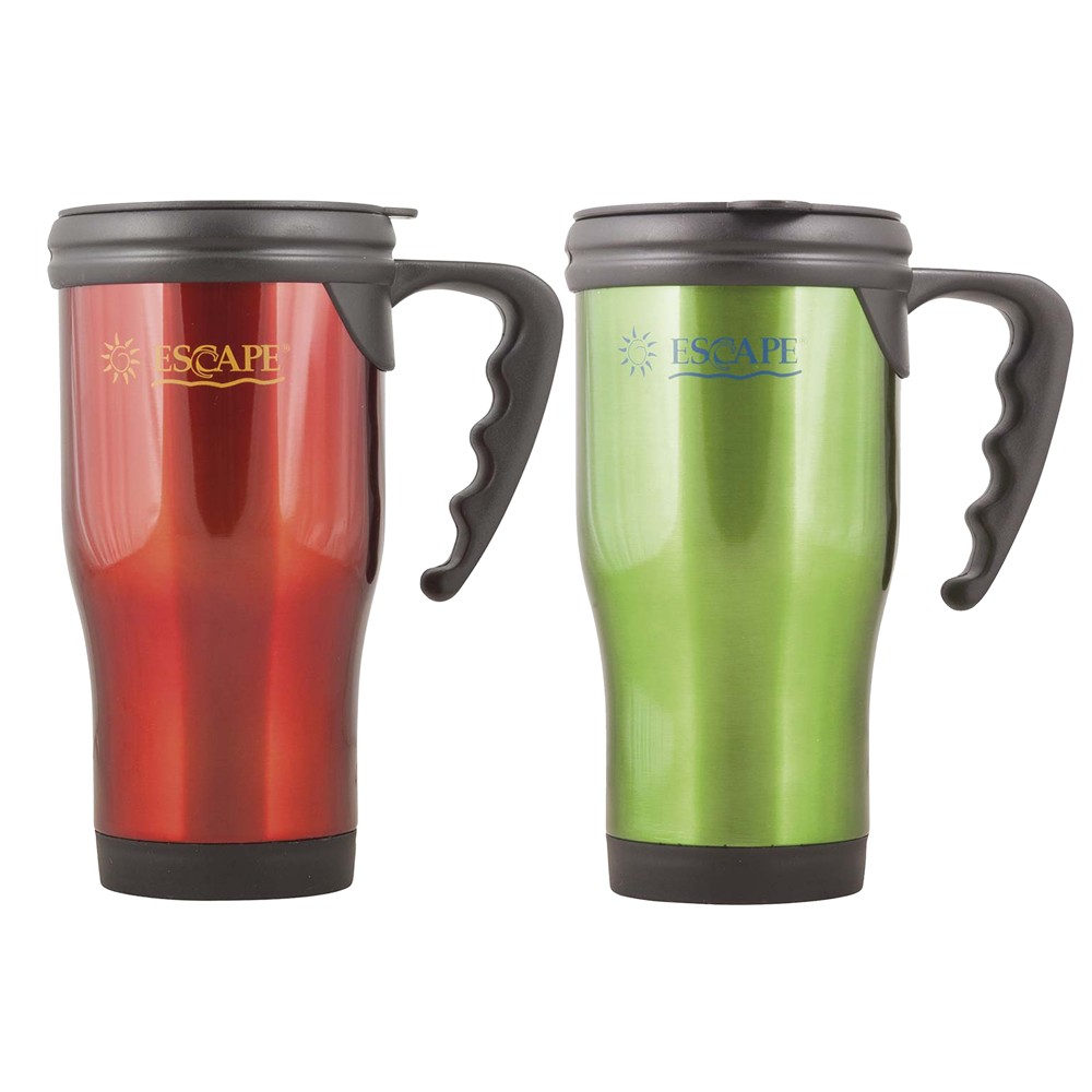 Termus kampingu në formë gote me dorezë prej material çelik inox nga Escape për mbajtjen dhe ruajtjen e një pije të freskët ose të nxehtë për disa orë. Ideale për kamping, piknik, shëtitje, etj.