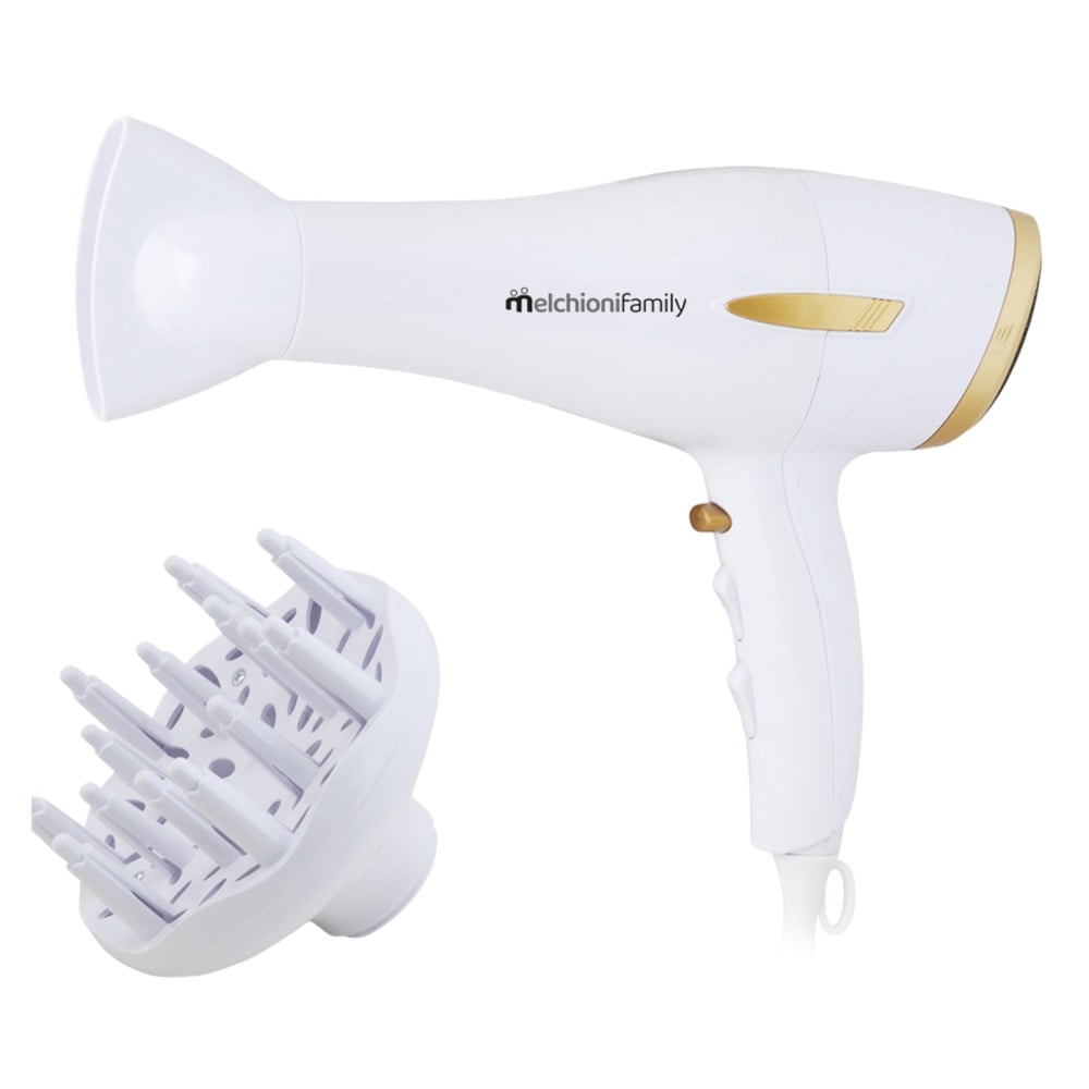 Tharëse flokësh me motor DC 2200W Melchioni. 3 pozicione të temperaturës / 2 shpejtësi. Me koncentrator dhe difuzor. Me ganp për varje. Fikja automatike e sigurisë. Furnizimi me energji elektrike: 220-240V ~ 50Hz