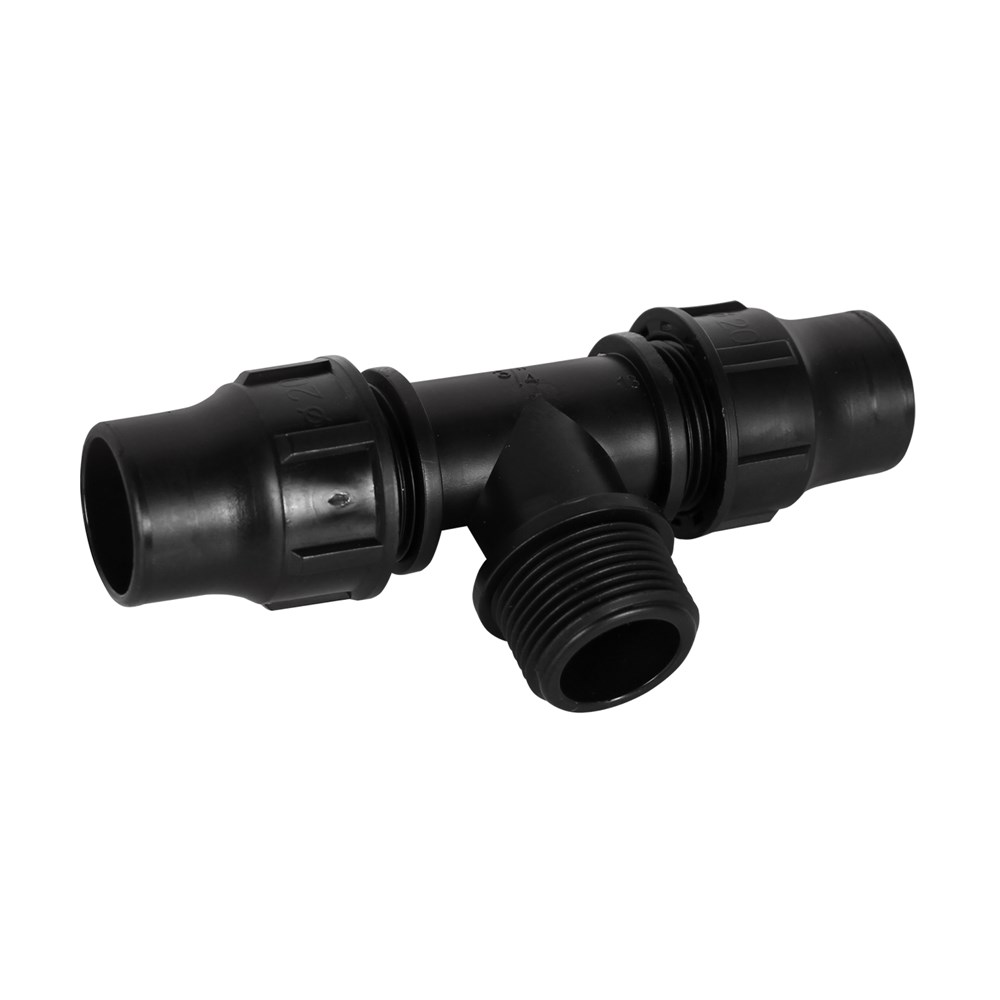 Ti me rakord 20x3/4"x20 mm mashkull prej PE me kënd 90°. Përdoret gjërësisht sot në Europe për instalimet këndore të linjave ujësjellëse, vaditjet në bujqësi etj. Kjo ti bën te mundur degezimin e rrjetit në kënd 90°. Kjo ti bashkon tubin LDPE Ø 20 me rakorderi te tjera me anë të filetove, për bashkimin me fileto rekomandojmë të përdoret teflon ndërsa tubi bashkohet me ti-në në mënyrë mekanike me rakord. E prodhuar me standarte Europiane, rezistent ndaj lëndëve gërryese dhe projektuar për t'i bërë ballë presionit deri në 6 Bar.