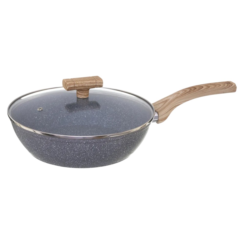 Tigan i thellë graniti, ideal për skuqje dhe gatime të ndryshme në shtëpi. Doreza nxehtësi duruese mundëson gatim praktik dhe të sigurtë. Falë materialit inovativ të veshur të aluminit, shpërndarja e nxehtësisë bëhet në mënyrë të njëtrajtshme dhe shumë efiçente. Gjithashtu, ky material mundëson mosngjitjen e ushqimeve gjatë gatimit. Tigani është i përshtatshme për të gjitha llojet e pjanurave, me gaz, elektrike apo induksion. Tigani eshte i pajisur edhe me kapak i cili eshte i ndertuar nga material xhami te temperuar i cili eshte disa here me rezistent sesa xhami i zakonshem.Rekomandohet perdorimi i aksesorëve te cilët nuk demtojnë materialin e veshjes Germanitium si psh: lugë druri, silikoni etj. Përmasa 28 x H. 14.5 cm