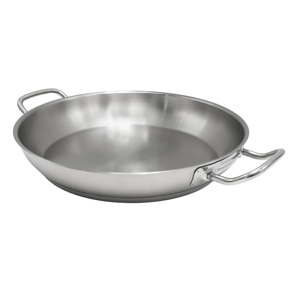 Ky tigan profesional me dy doreza është zgjedhja ideale për gatime me volum të madh dhe rezultate perfekt të njëtrajtshme. I prodhuar nga inoks i cilësisë së lartë, ai ofron qëndrueshmëri të shkëlqyer, rezistencë ndaj temperaturave të larta dhe një pamje elegante në ngjyrë argjendi që mbetet e pandryshuar me kalimin e kohës. Me diametër të gjerë prej 32 cm dhe lartësi 5 cm, tigani siguron sipërfaqe të bollshme gatimi, perfekte për sauté, skuqje, mish, perime, gatime me bazë salcash apo për përdorim intensiv në restorante dhe kuzhina profesionale. Materiali inox shpërndan nxehtësinë në mënyrë uniforme, duke garantuar gatim të balancuar dhe efikas. Dy dorezat anësore të forta dhe ergonomike ofrojnë kapje të sigurt dhe kontroll maksimal, edhe kur tigani është i mbushur plot. Një tigan i fuqishëm dhe funksional që plotëson kërkesat e kuzhinave profesionale dhe të çdo kuzhine shtëpiake që kërkon cilësi të lartë.