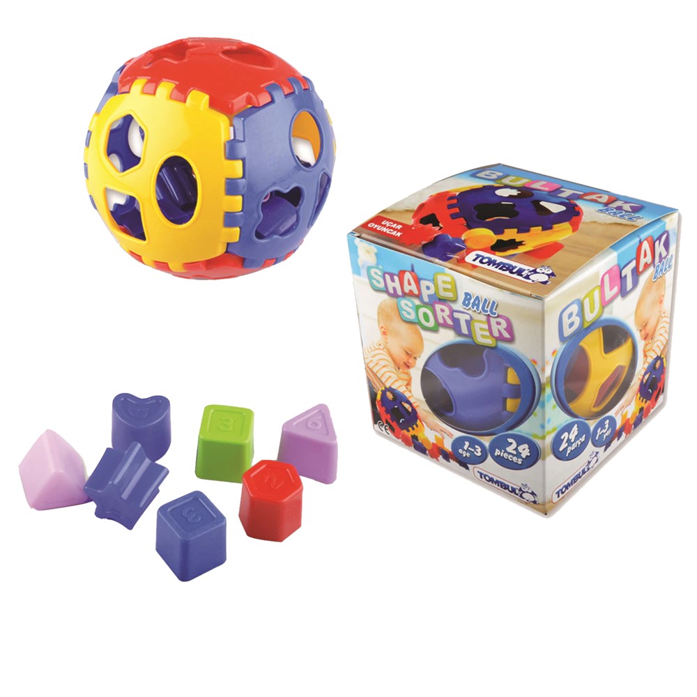 Top me forma gjeometrike për fëmijë, prej materiali plastik të qëndrueshëm, në ngjyrë të verdhë, të kuqe dhe blu, i cili ka 14 forma gjeometrike që përfshijnë forma katrore, rrethore, forma gjashtëkëndore dhe figura në formë zemre dhe yjesh. Kjo lodër ndihmon në zhvillimin e aftësive memorizuese, aftësive të të mësuarit dhe aftësive të të menduarit, dhe ndihmon fëmijët të mësojnë ngjyrat, numrat dhe format gjeometrike. Materiali përbërës dhe boja nuk kanë përmbajtje toksike apo të dëmshme për fëmijët dhe produkti është i çertifikuar për siguri në përdorim. Ky produkt është i përshtatshëm në përdorim për fëmijë të moshës 1 deri në 3 vjeç.