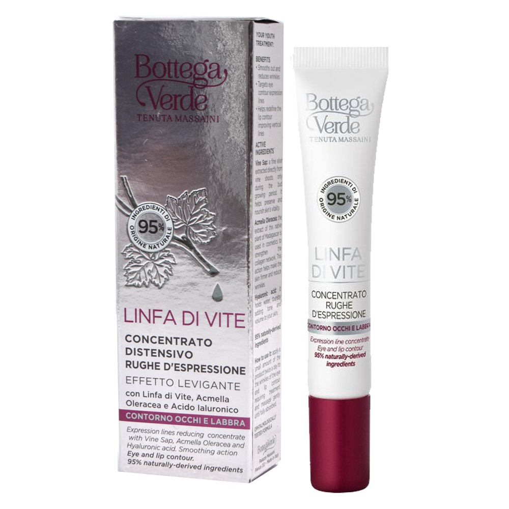 Krem për zonën e buzëve dhe të syve, për trajtimin e lëkurës gjatë ditës dhe natës, i cili ndihmon në detoksifikimin e lëkurës dhe korrigjimin e rrudhave, rigjeneron lëkurën, parandalon plakjen e parakohshme dhe ndihmon në riaktivizimin qelizor, duke nxitur sintezën e nevojshme për energji. Përmbajtja e pasur me ekstrakt të rrushit të kuq Massaini ndihmon në aktivizimin e proceseve natyrale detoksifikuese dhe parandalon krijimin e toksinave të reja. Ky produkt është i përshtatshëm për përdorim në të gjithë llojet e lëkurës.