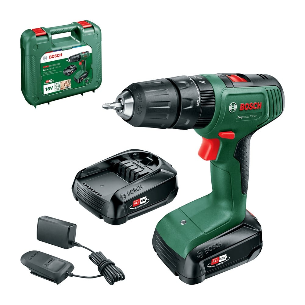 Po vlerësoni:Trapan me bateri, Bosch, EasyImpact, 18V-40, 18 V, 2 x 2.0 Ah, 32 Nm, 24450 bpm, 13 mm mandrino, 8 mm vide, 13 mm celik, 30 mm dru, 13 mm beton