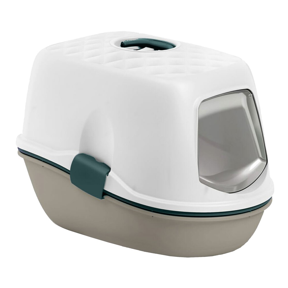 Me forme te pershtatshme dhe hesire te mjaftueshme per mace adulte. Kapaku I mbyllur dhe dera plastike, mundesojne izolim te plote dhe eliminojne daljen e grimcave te reres nga tualeti. Hapesira e mbyllur, krijon efekt te pershtatshem dhe ben me te lehte procesin e jashteqitjes tek macet.