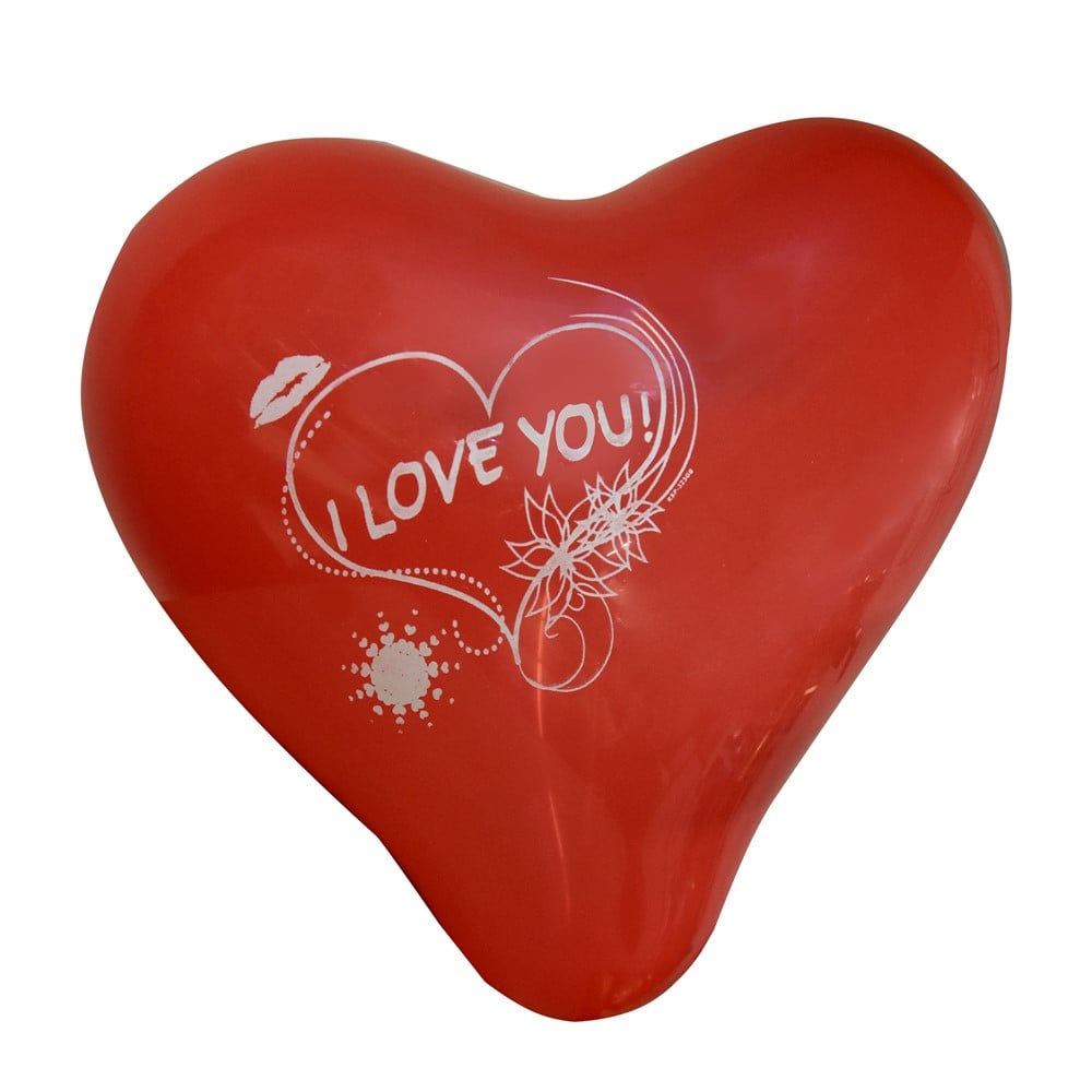 Tullumbace në formë zemre, prej materiali lateksi, në ngjyrë të bardhë dhe të kuqe, me dizajn "I love you". Ky produkt është i përshtatshëm për krijimin e dekorimeve të ndryshme për festa dhe evente, si dasma, festa ditëlindjeje, festë Shën Valentini apo përvjetore.