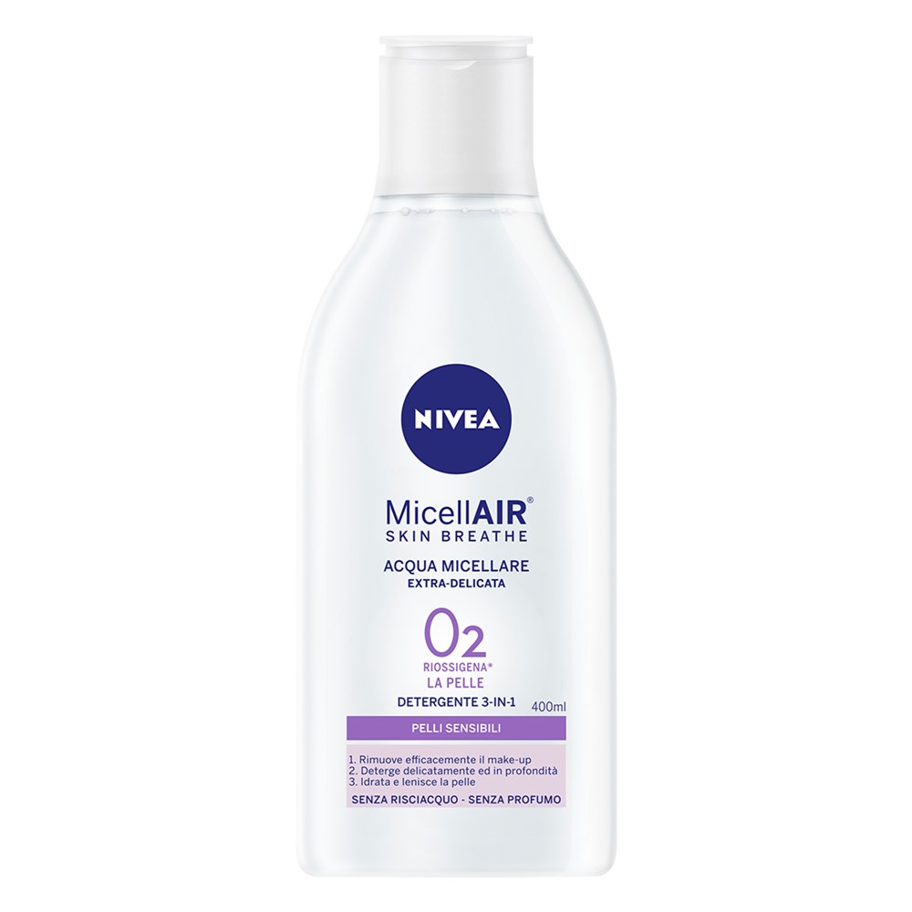 3 in 1 micellar water, Extra Delicate, Nivea, plastic, 400 ml, transparent and purple, 1 piece