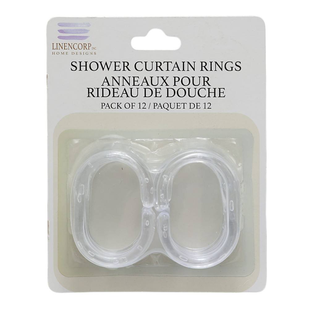 Unaza për perde dushi, 12 copë. Prodhuar ne material plastik dhe ngjyrë transparente këto unaza jan shumë rezistente ndaj ujit. Në formë ovale unazat do jenë gjithnjë të qëndrueshme.
