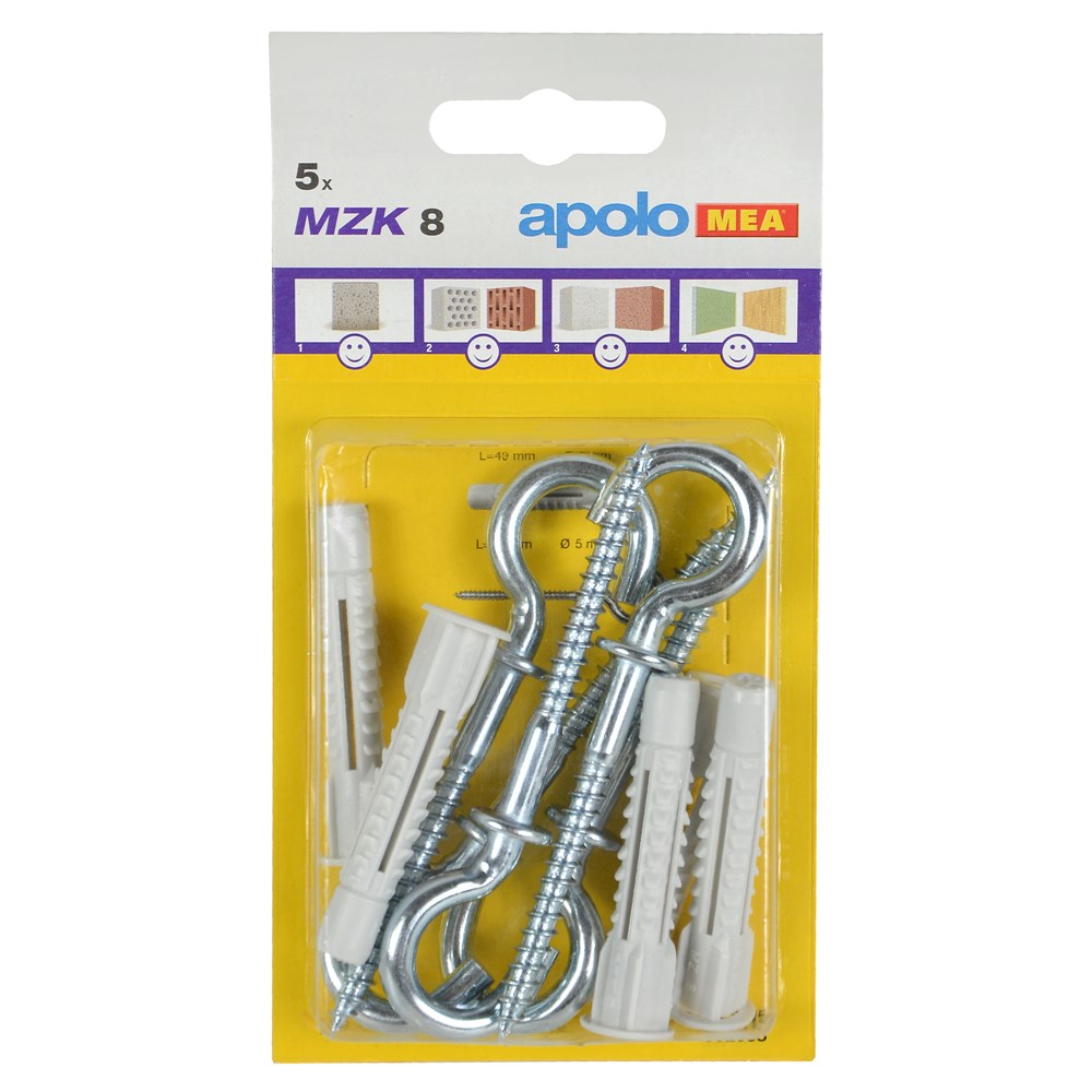 Upa plastike MZK 8x60 Apolo dhe vida heksagonale 5x86, 5 copë/ pako