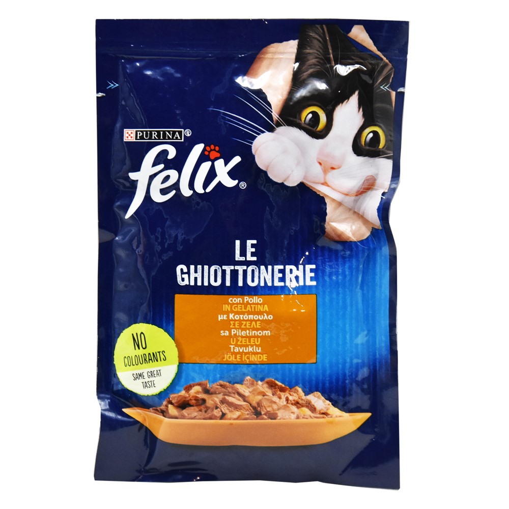 Dhe kjo nuk është e gjitha! FELIX Le GHIOTTONERIE është në dispozicion në një shumëllojshmëri të gjerë recetash të shijshme në pelte të shijshme për të kënaqur dëshirën e maces tuaj për shumëllojshmëri çdo ditë. Ata janë thjesht të shijshëm!