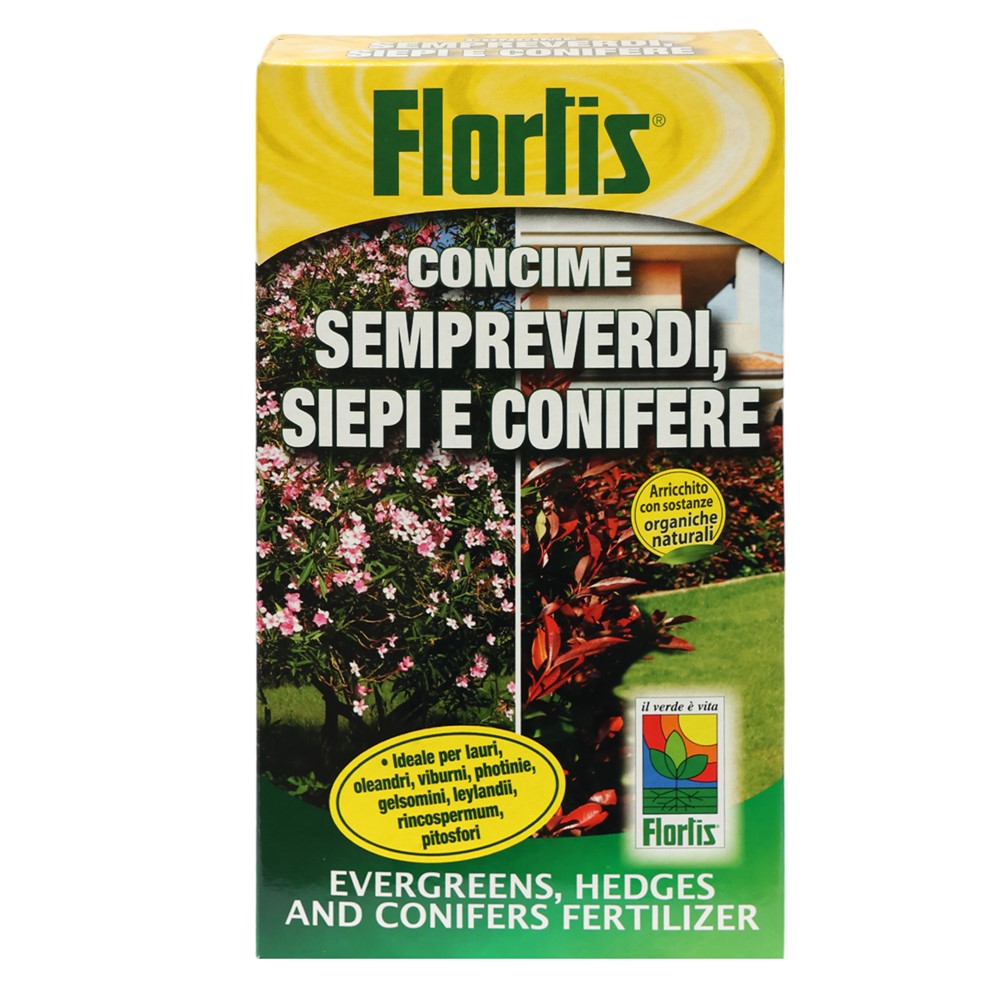 Eshtë një produkt specifik, i përshtatshëm për një rritje luksoze dhe të ekuilibruar të konifereve, gardheve dhe gjelbërimeve të përhershme. Ideale për pishat skoceze, bredhi, selvi, dëllinja, kedri dhe të gjitha gjelbërimet e gjelbra (holly, pittosporum, dafinë, euonymus, oleander etj). Pleh organik mineral NPK 10-5-15 +10 C forcues i gjelbër. Përdorimi: 4 lugë për enë me diametër 40 cm, 8 lugë për enë 80 cm dhe 5-10 lugë për bimë në tokë. Shpërndajeni në sipërfaqen e tokës në pranverë dhe vjeshtë, pastaj ujitje.