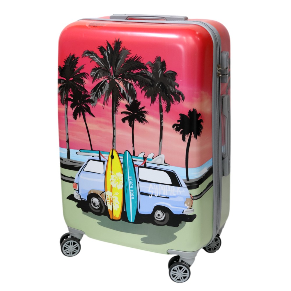 Valixhe udhëtimi e bërë nga plastika ABS, një material i qëndrueshëm dhe i fortë, i dizajnuar për të përballuar udhëtimet më të gjata dhe kushte të ndryshme udhëtimi. Me motive të freskëta verore, kjo valixhe sjell një atmosferë të ngrohtë dhe relaksuese, duke i dhënë një prekje tropikale dhe energjike çdo udhëtimi. Kapaciteti i mjaftueshëm ofron hapësirë të bollshme për rroba dhe sende të tjera të nevojshme për pushime ose udhëtime të shkurtra. Ajo është e pajisur me rrota për lëvizje të lehtë dhe dorezë të fortë për transportin e sigurt. Dizajni i veçantë me motive verore do të tërheqë vëmendjen dhe do të bëjë që udhëtimet tuaja të jenë më të gëzuara dhe stilistike.