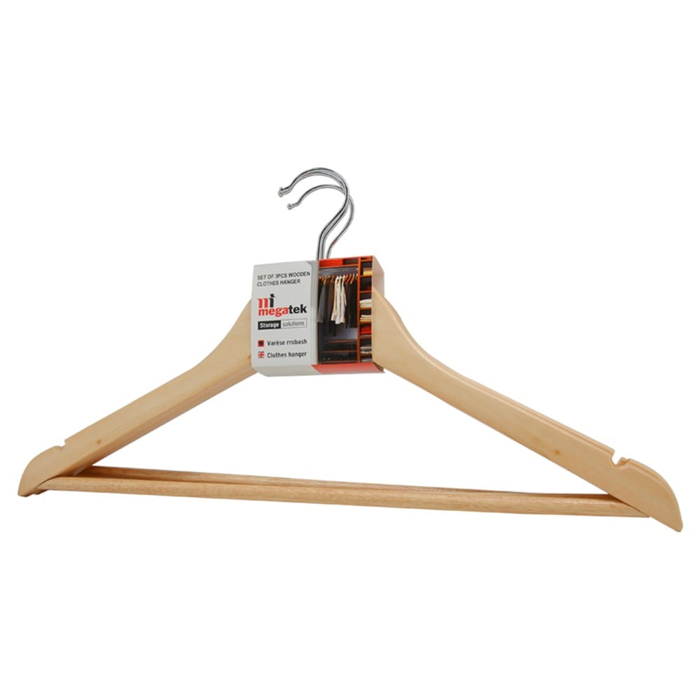 Varëse rrobash kremastar set 3 copë, MEGATEK, druri, natyrale, 44.5x1.2xH23 cm