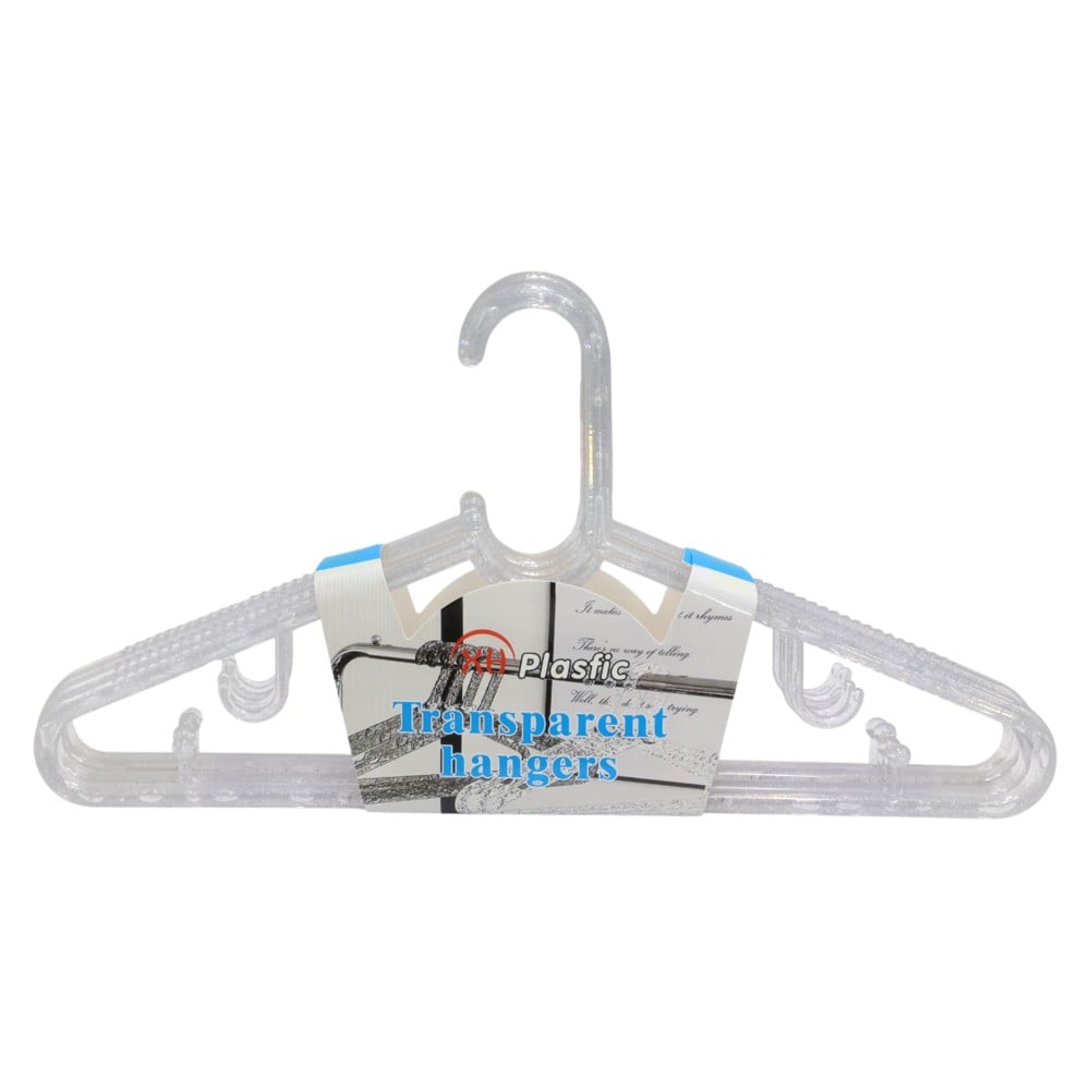 Clothes hanger, set of 4 pieces, plastic, clear, 41x21 cm