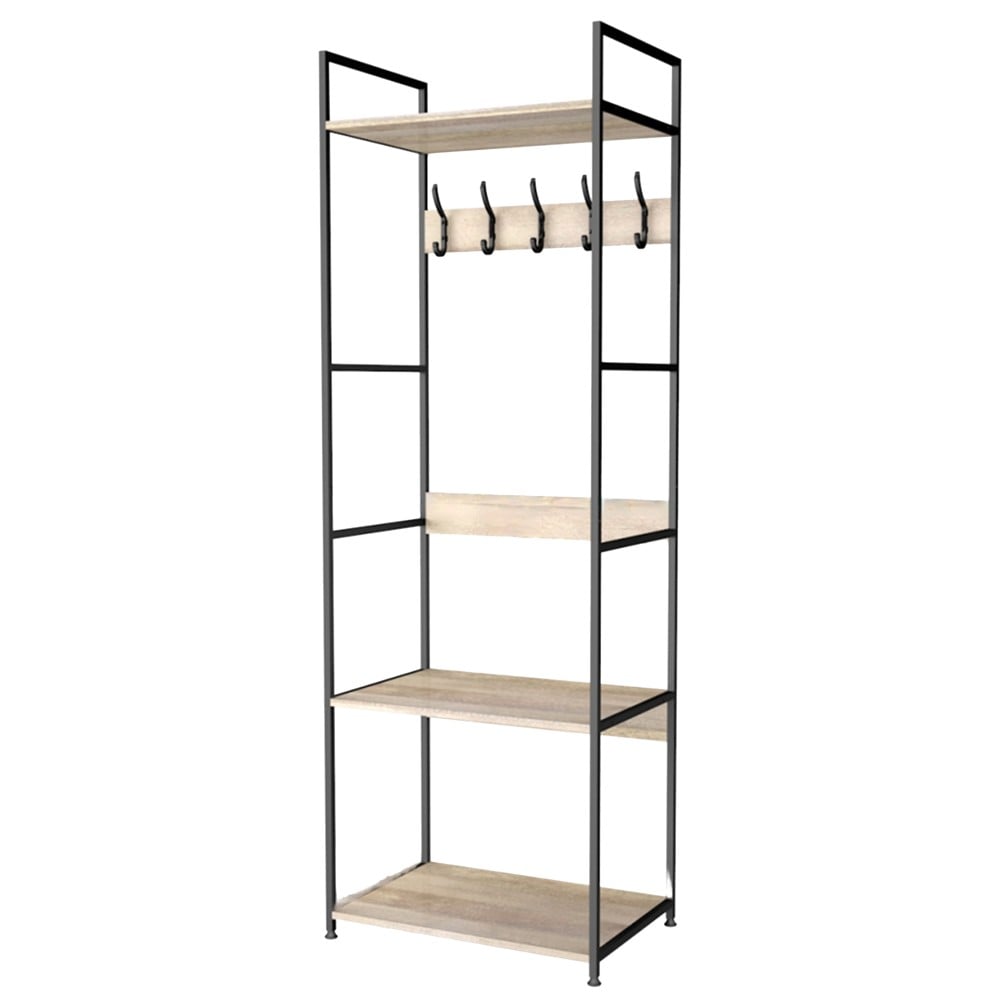 Po vlerësoni:Varëse rrobash, me raft, metal/melaminë, e zezë/kafe, 59x40xH175 cm