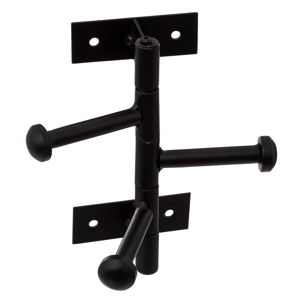 Kjo varëse rrobash është zgjidhja e duhur për ju. Ajo përshtatet po aq mirë në korridor për veshjet e sipërme ose në banjë për peshqirët. Varësja mund të montohet lehtësisht në mur dhe është e pajisur me 3 shufra/grepa që mund të rrotullohen në drejtimin e dëshiruar. Produkti është prej metali të zi dhe ka një dizajn elegant dhe elegant.