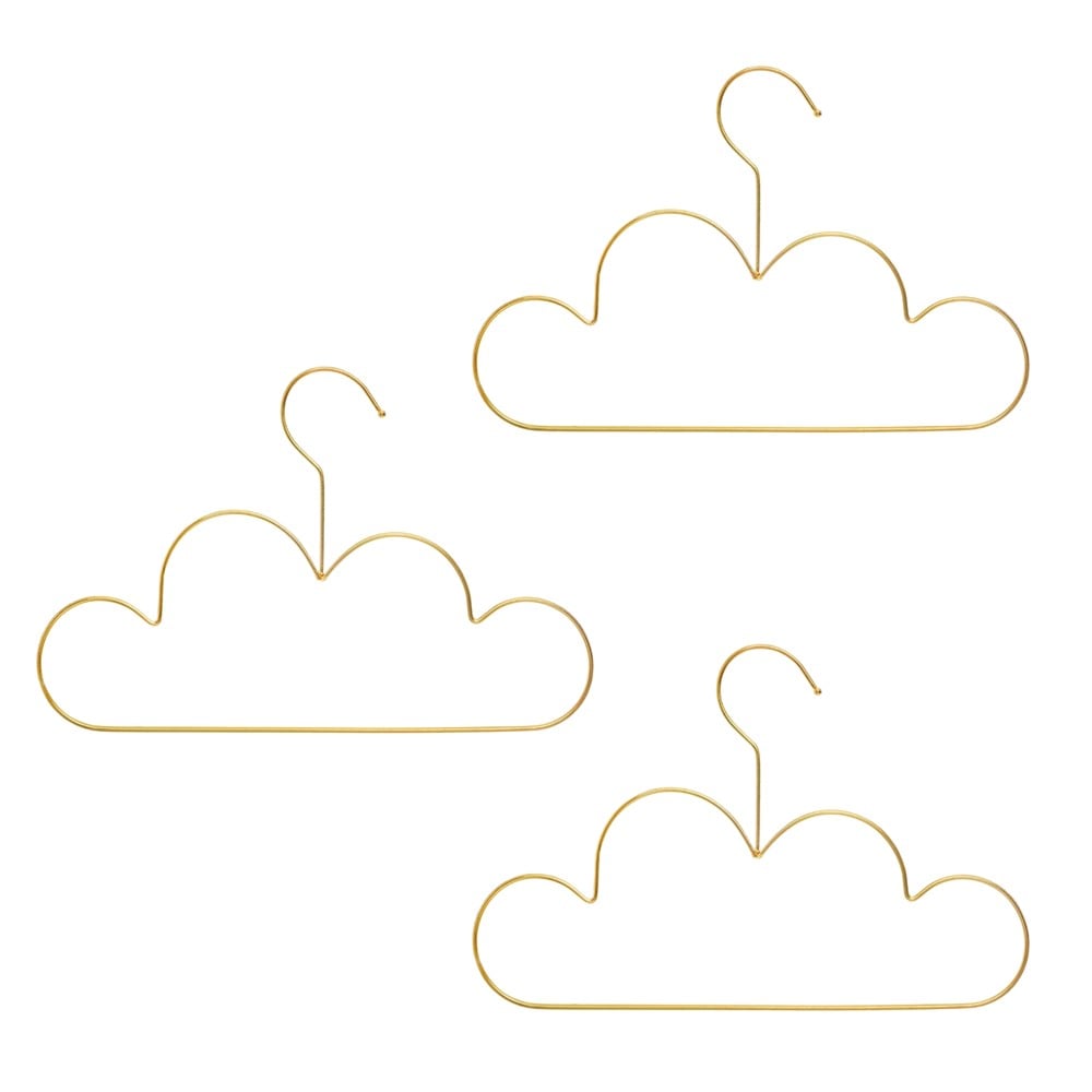 Set 3. Varëse rrobash për fëmijë në formë reje. E bërë nga materiali metalik në ngjyrë floriri. E përshtatshme për të varur rroba fëmijësh.