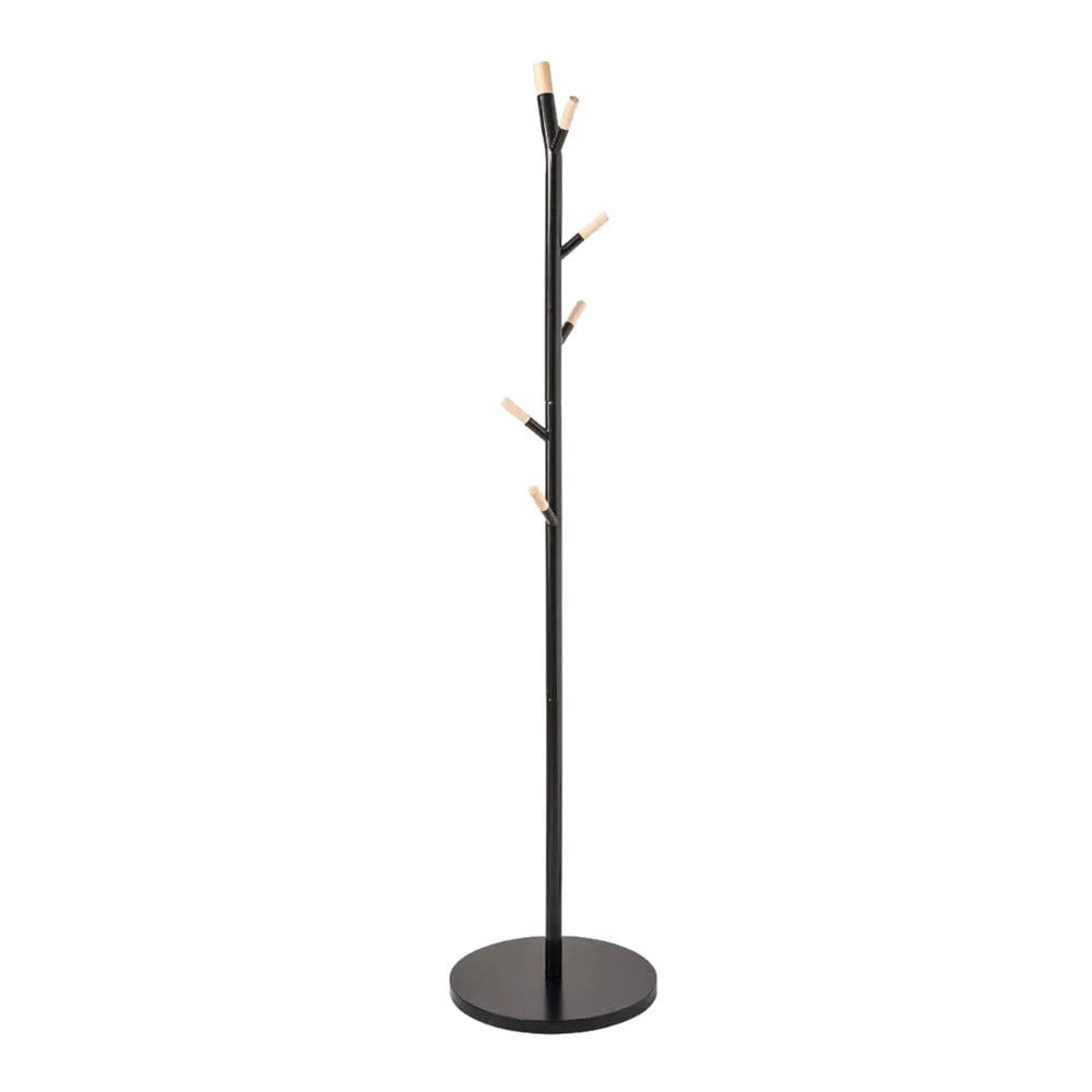 Varëse rrobash, statike, 6 grepa, metal/dru, e zezë, 40xH175 cm