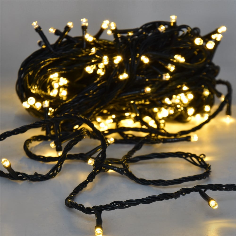Varg dritash LED, 20m, 200 led, statike, me kabell jeshil, gold, 2700K, per ambient te jashtem, IP44