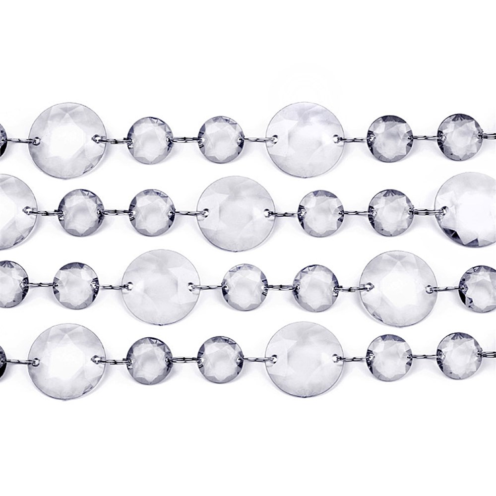 Ky varg prej kristali, 1 m, janë të lidhura me unaza metalike dhe përmbajnë rruaza. Ky varg është perfekt në çdo situatë, rast ose feste.
