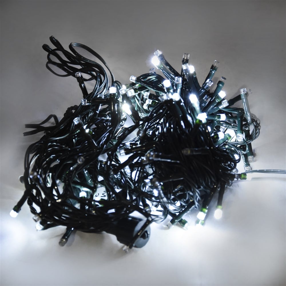 Po vlerësoni:Varg ndriçimi LED, 10m, 5cm hapsire ndermjet LED, +3 m Kabull, 6W, 31V, IP44, 200L, 6400K All Flash, Kabull jeshil