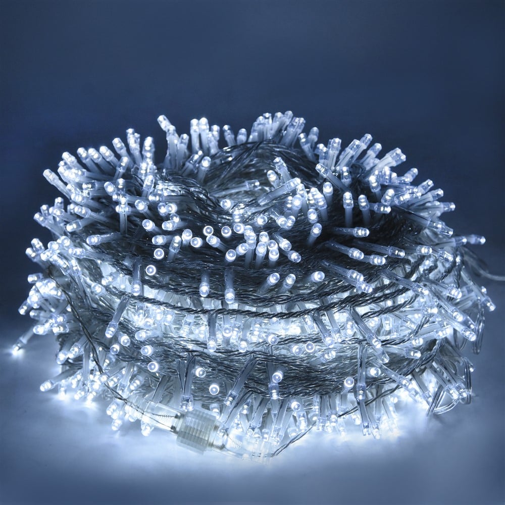 Po vlerësoni:Varg ndriçimi LED, 50m, 5mm hapsire ndermjet LED, +3 m Kabull, 12W, 31V, IP44, 1000L, 6400K, Kabull transparent