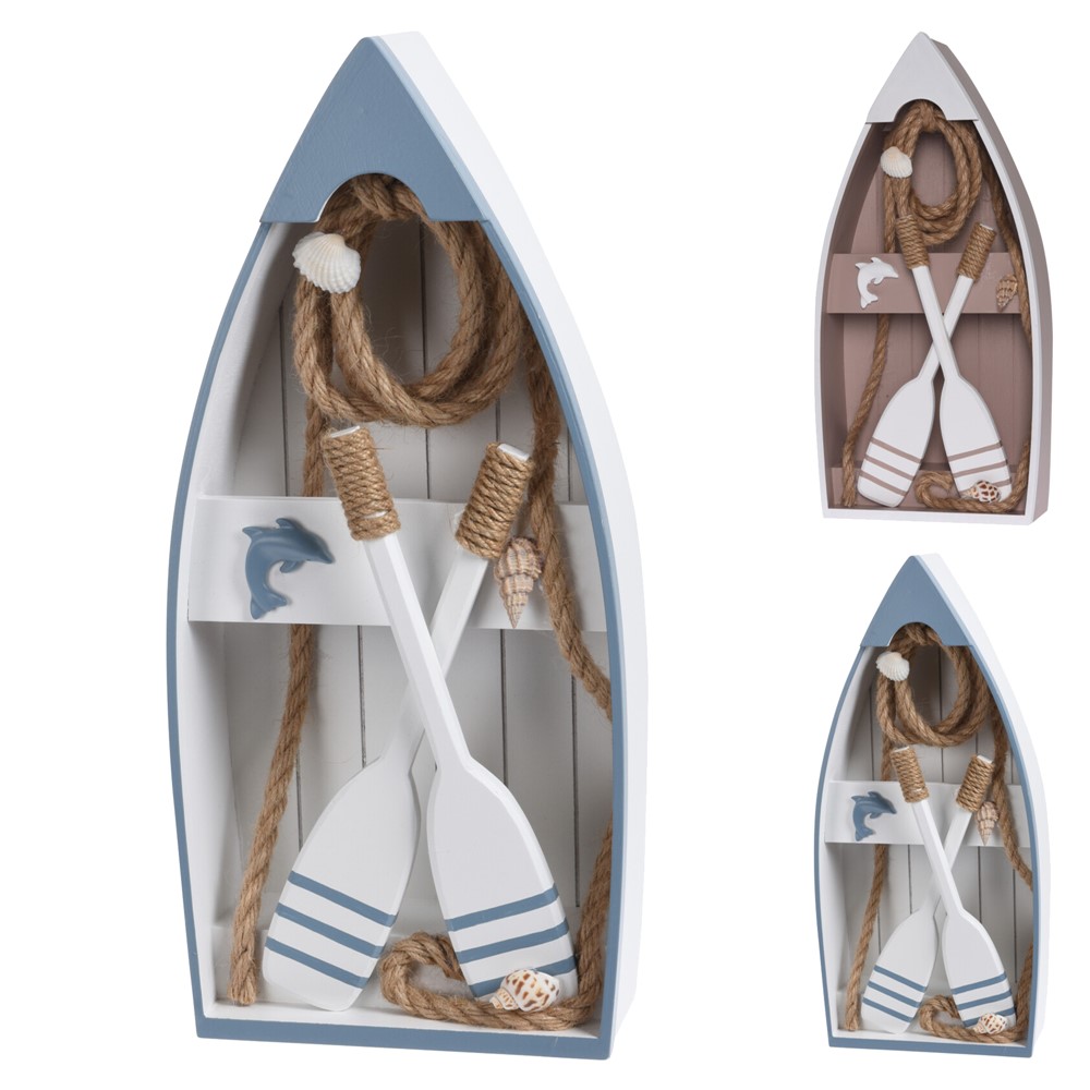 Varkë dekorative, dru, blu/e bardhë, 18x8x40 cm