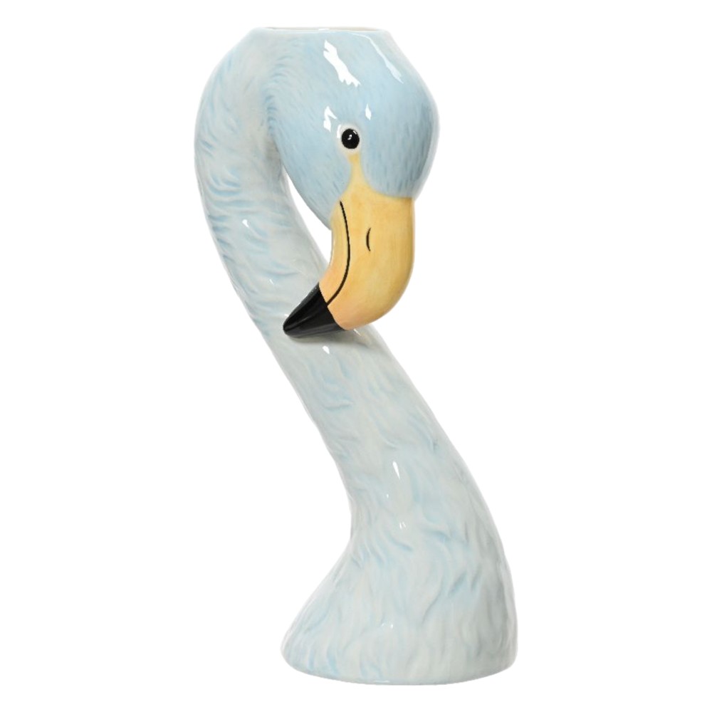Dizajni i vazos "Flamingo" është i veçantë dhe i shkëlqyer, duke përfshirë detaje të vogla të fluturave në ngjyra të ndryshme pastel blu, duke sjellë një atmosferë të freskët dhe të këndshme në ambientin tuaj. Me përmasat 13x8.3xH25.5 cm, kjo vazo ofron një formë elegante dhe të gjatë, e cila e bën atë të përshtatshme për të vendosur lule ose bimë të gjata. Materialet e përdorura, si dolomiti, e bëjnë atë një pjesë të qëndrueshme , duke siguruar një element të bukur në ambientin tuaj.