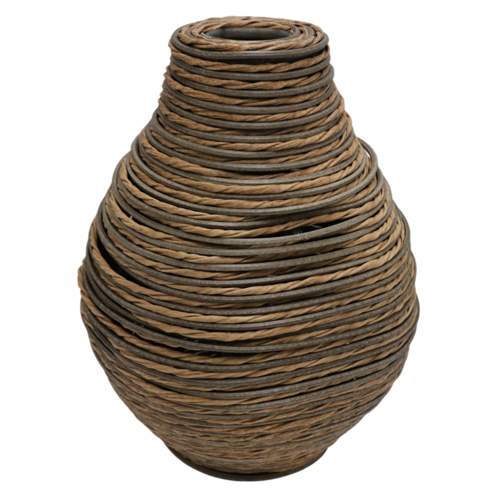 Decorative vase, straw, blue/brown, Ø32×H26 cm
