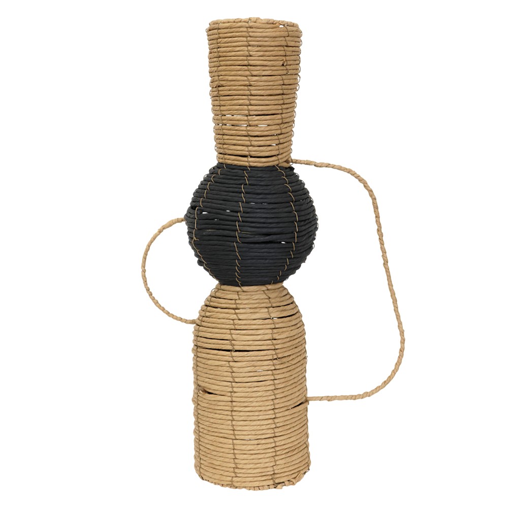 Vazoja dekorative prej kashte në ngjyrë natyrale dhe të zezë me përmasa 22x22xH75 cm është një zgjedhje elegante dhe natyrale për të shtuar ngrohtësi dhe stil në çdo hapësirë. Materiali prej kashte i jep vazos një pamje të butë dhe organike, duke sjellë ndjesinë e natyrës brenda ambientit tuaj. Kombinimi i ngjyrës natyrale me detajet në të zezë krijon kontrast vizual që e bën vazon tërheqëse dhe të përshtatshme për stile arredimi rustic, boho, apo modern. Përmasat e saj kompakte, por të larta, e bëjnë të përshtatshme për vendosjen në qoshe të dhomës, mbi tryezë apo në raft, ku mund të mbajë lule të freskëta, degë dekorative ose bimë artificiale. Kjo vazo dekorative është një element i thjeshtë por i efektshëm për të rigjallëruar çdo ambient me një prekje natyrale dhe estetike.