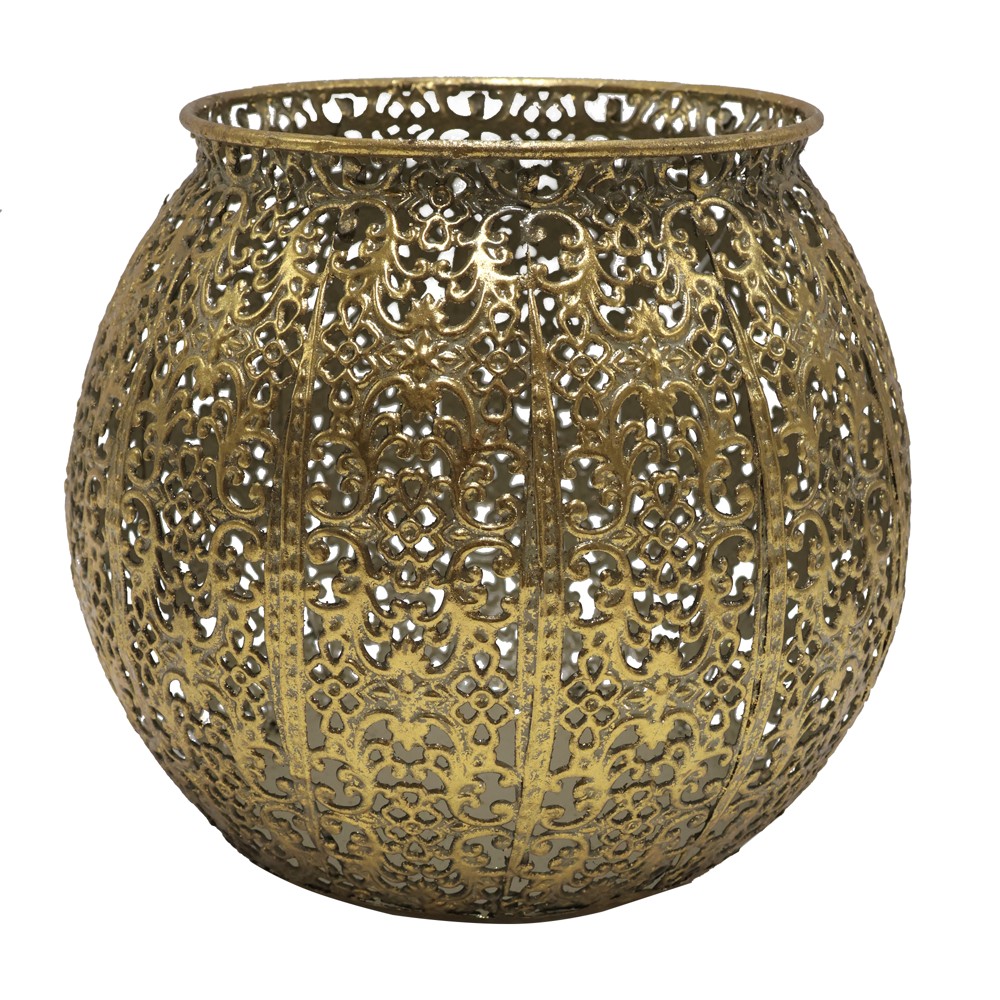 Vazot dekorative janë një element i domosdoshëm dhe një aksesor shumë i këndshëm për ambientet tuaja. Kjo vazo metalike, në ngjyrë të florinjtë vjen në një stil oriental të cilin ju mund ta kombinoni me arredimin tuaj. Vjen në përmasat 14xH18 cm, dhe ju jund të realizoni kompozime me lule artificiale apo mund ta vendosni në mesin e tavolinave apo edhe në rafte. Dizanji i saj modern e bën atë një aksesor perfekt për dekorimet që ju do të realizoni. Ngjyra e florinjtë i shton një prekje luksoze dhe elegante.