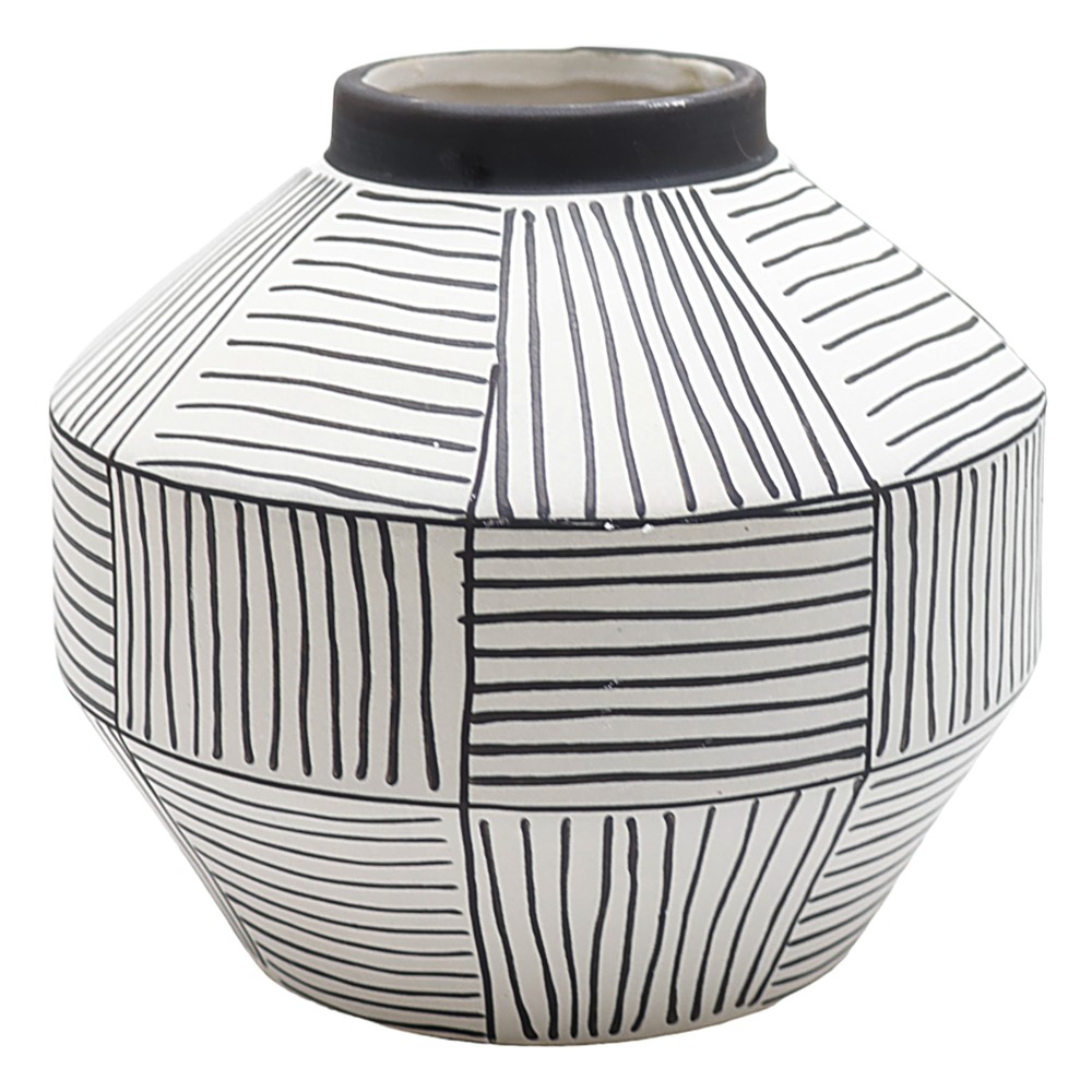 Vazo dekorative, qeramikë, e bardhë/e zezë, 18x18x16 cm