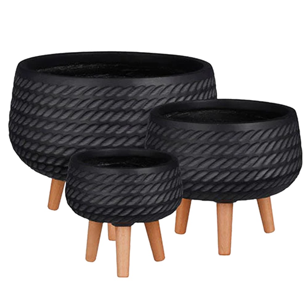 Vazo lulesh, Corda, set 3 copë, qeramike, e zezë, Ø24xH23 cm; Ø32xH27.5 cm; Ø42xH32 cm