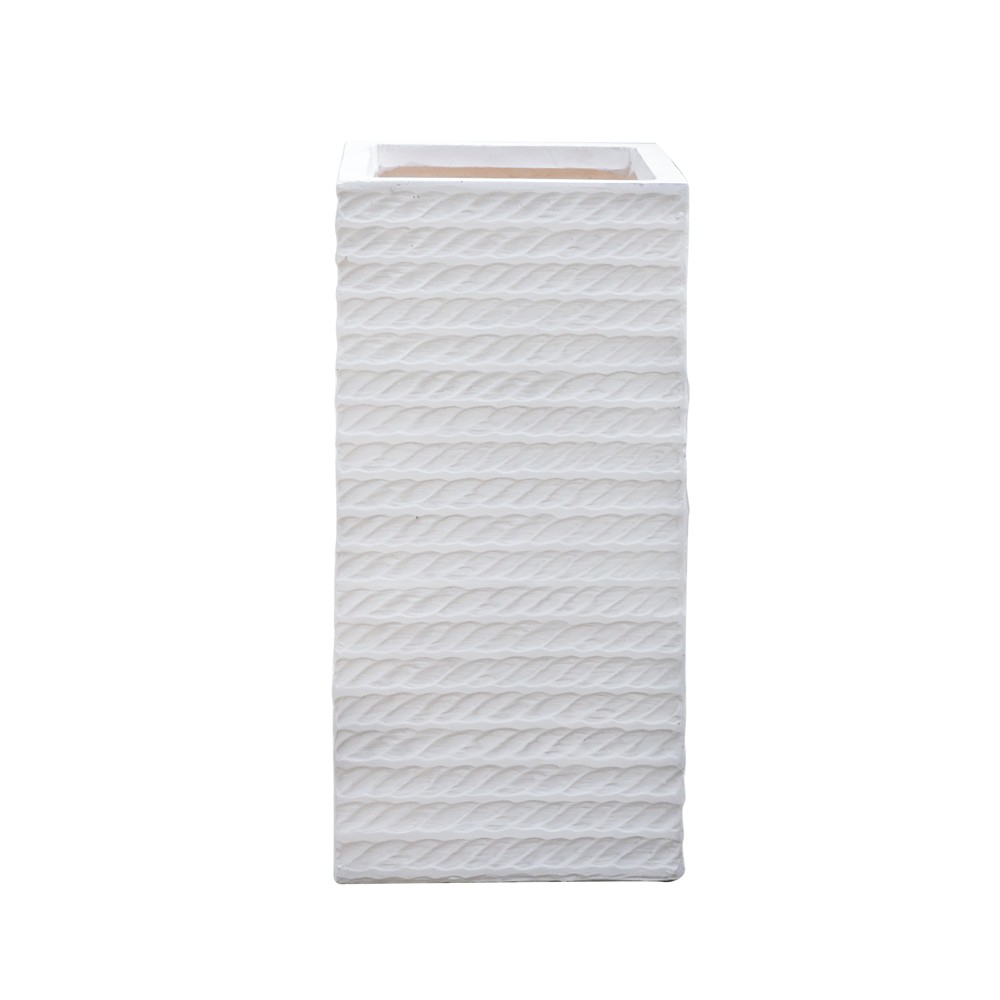 Vazoja e luleve vjen në një kombinim të bukur midis modernitetit dhe elegancës, e cili do të shtojë një ndjesi të freskët dhe të sofistikuar në ambientin tuaj. Krijuar nga fibra xhami/argjilë, me ngjyrën e bardhë vazo ofron një ndjenjë pastërtie , qëndrueshmërie dhe një estetikë të veçantë. Dizajni minimalist dhe i thjeshtë e bën këtë vazo të përshtatshëm për të gjitha llojet e dekorit.