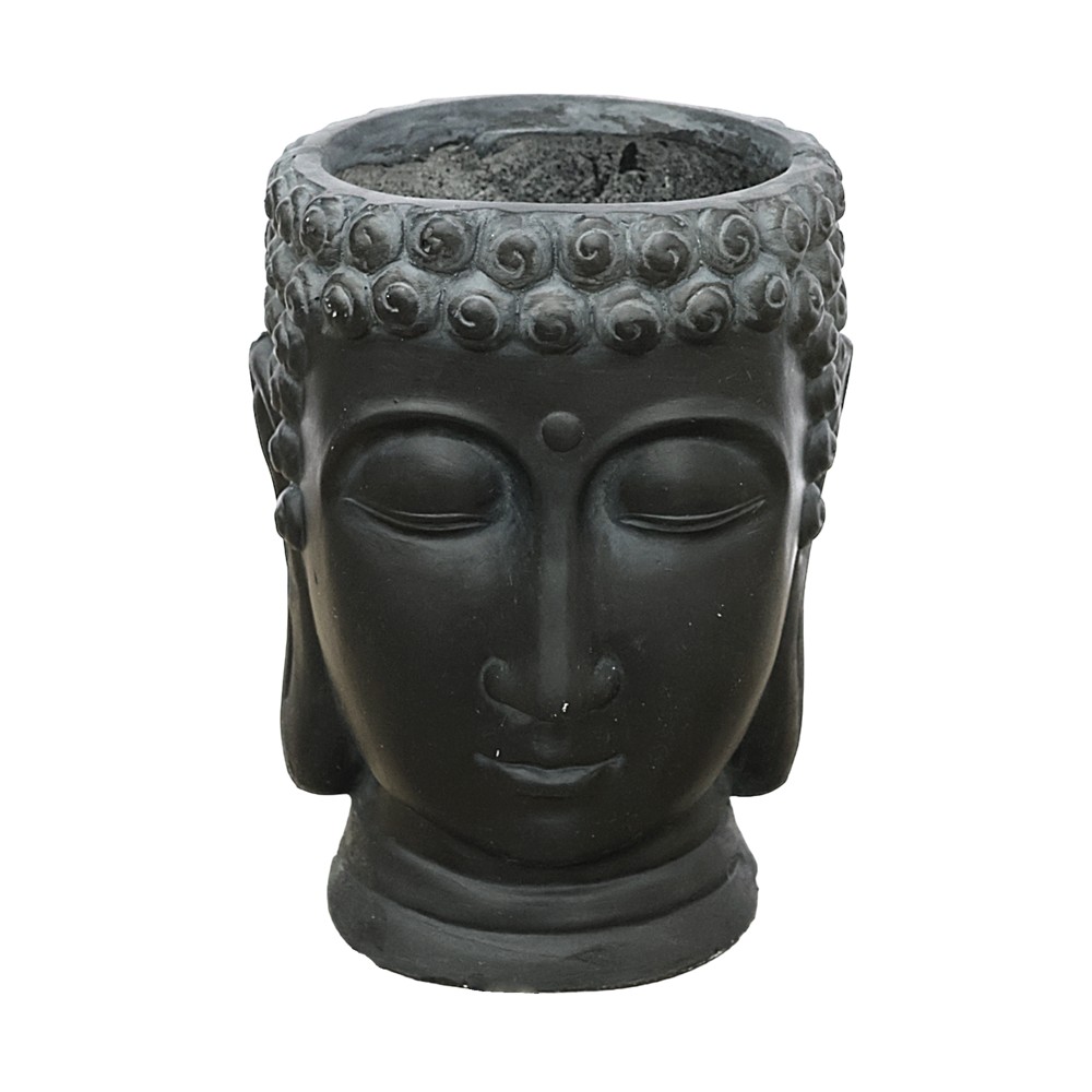 Vazo lulesh, fibër xhami/argjilë, e zezë, 19x18x24 cm