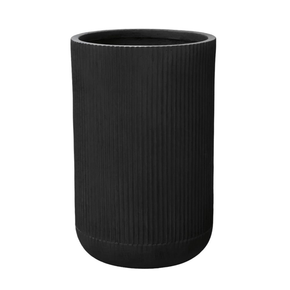 Vazo lulesh, fibër xhami/argjilë, e zezë, 24x24x37 cm