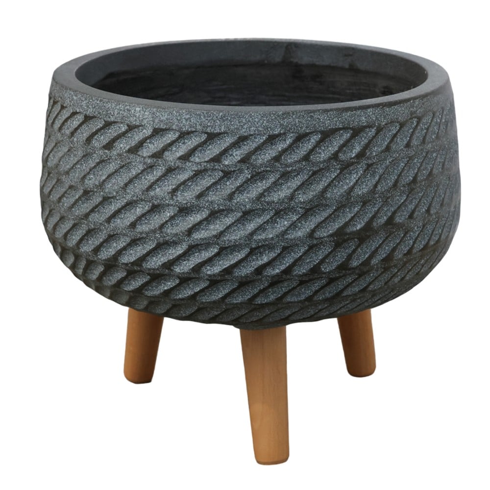 Vazo lulesh, fibër xhami/argjilë, e zezë, 32x32x28 cm