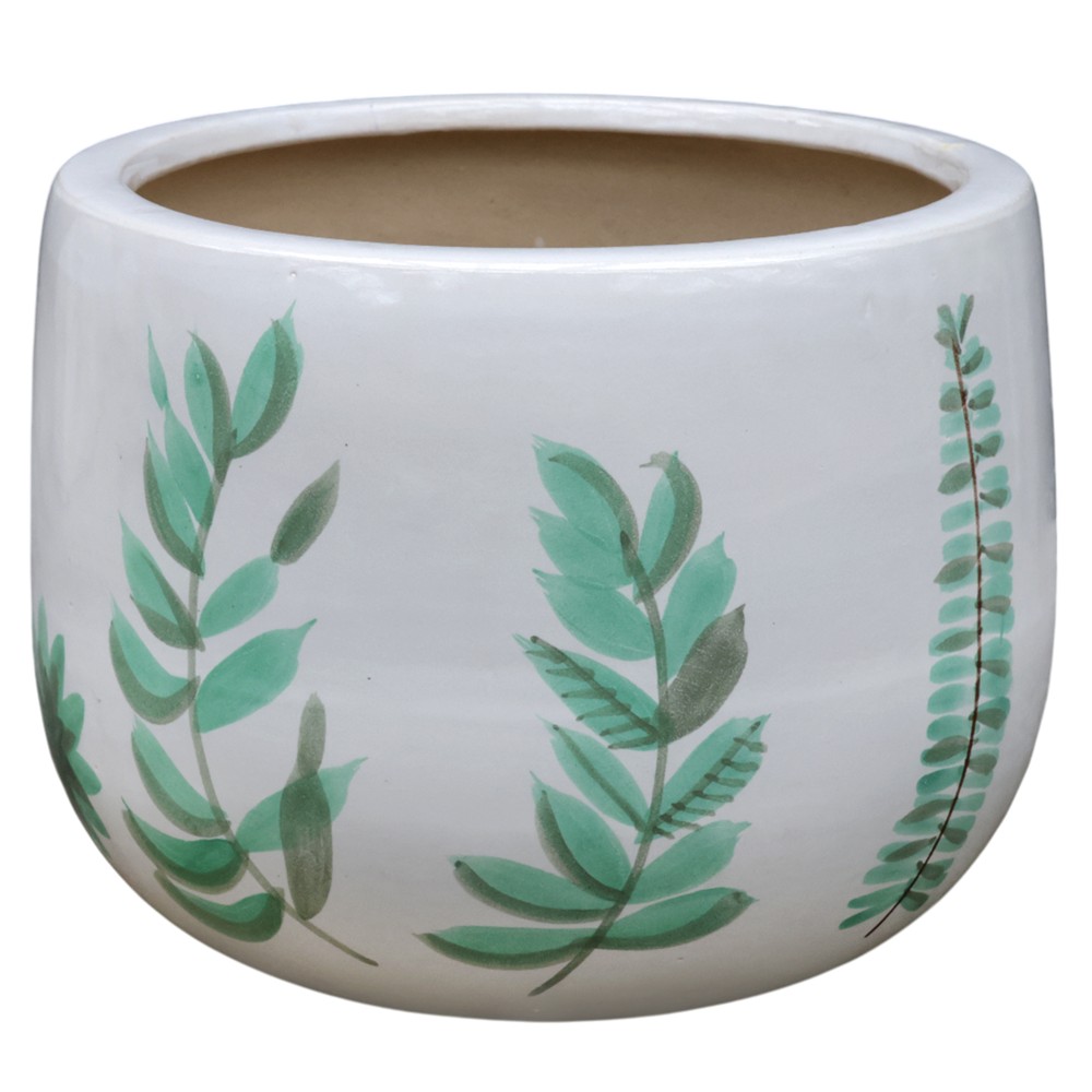 Vazo lulesh, L, qeramike, e bardhë/jeshile, Ø29xH22 cm