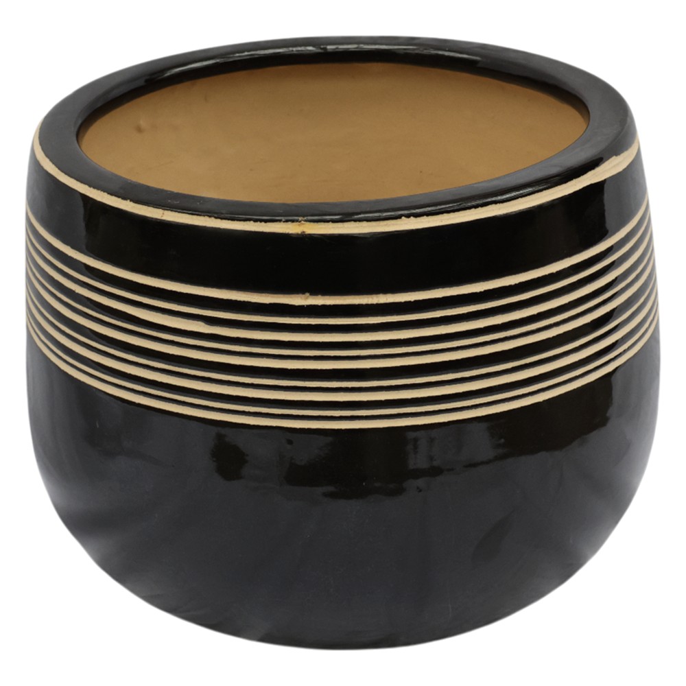 Vazo lulesh, L, qeramike, e zezë, Ø29xH22 cm